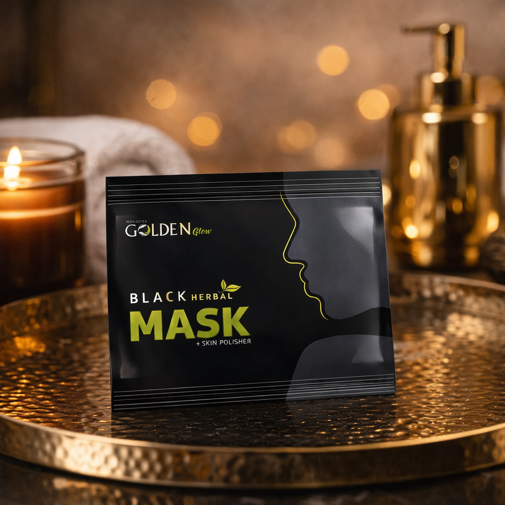 Golden Glow Black Charcoal Face Mask & Skin Polisher – Pack of 24 Sachets | Best Black Herbal Mask in Pakistan